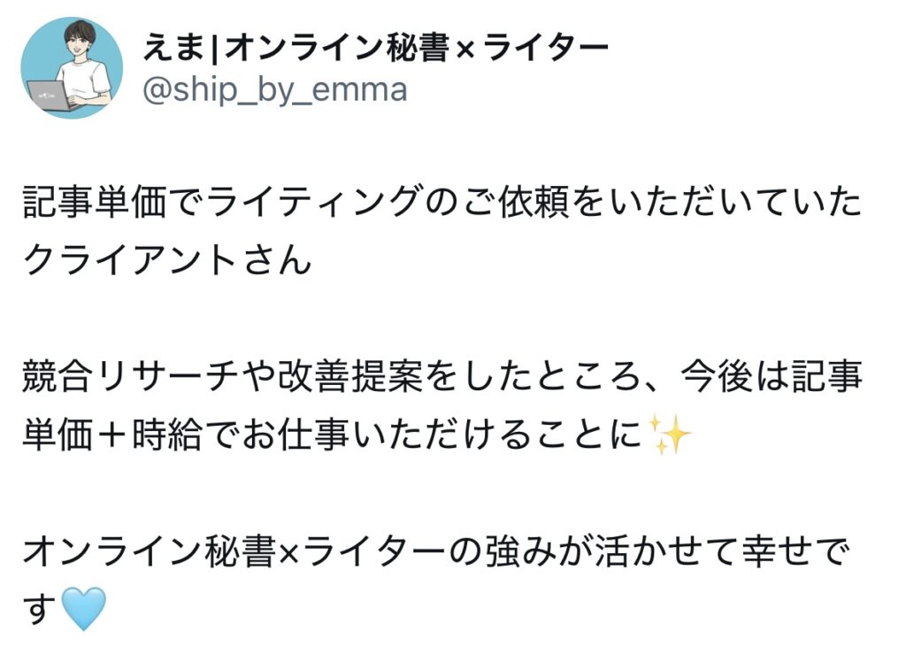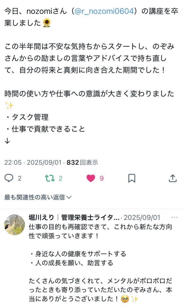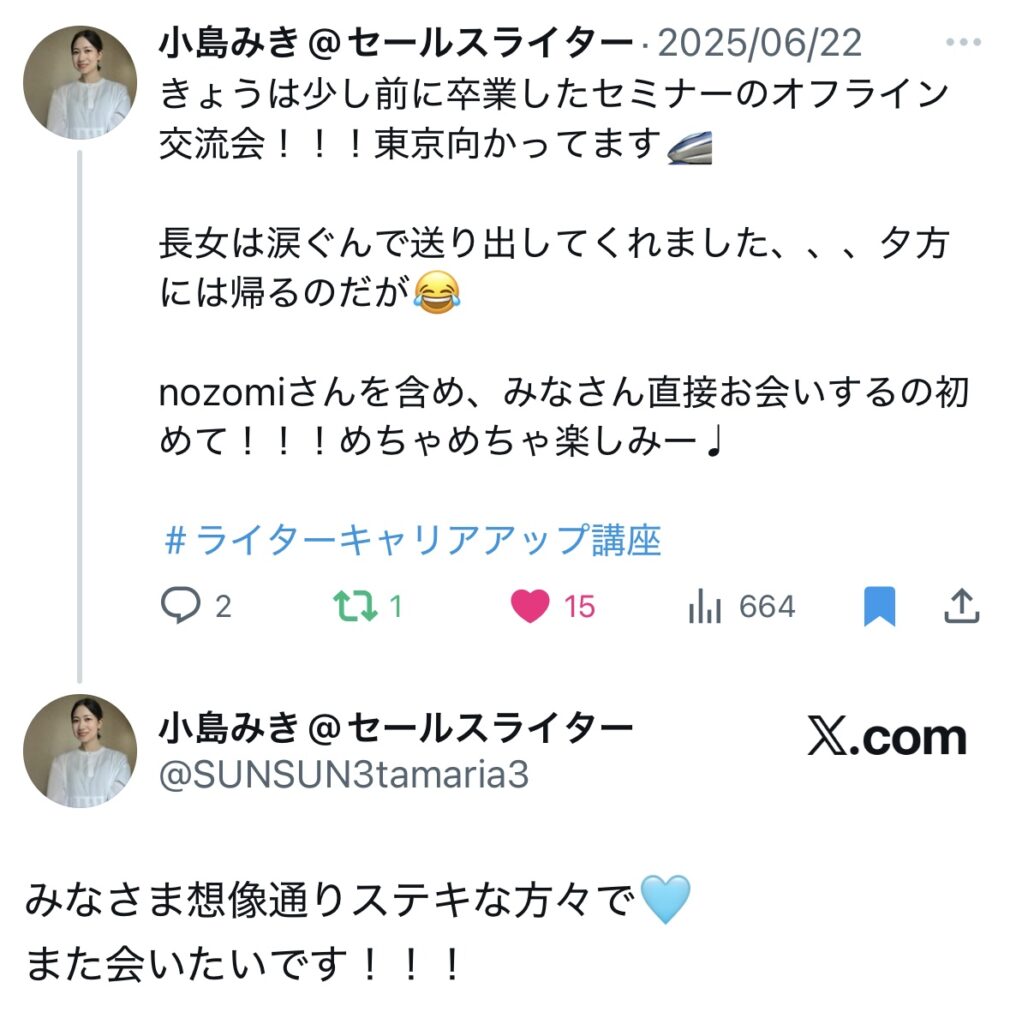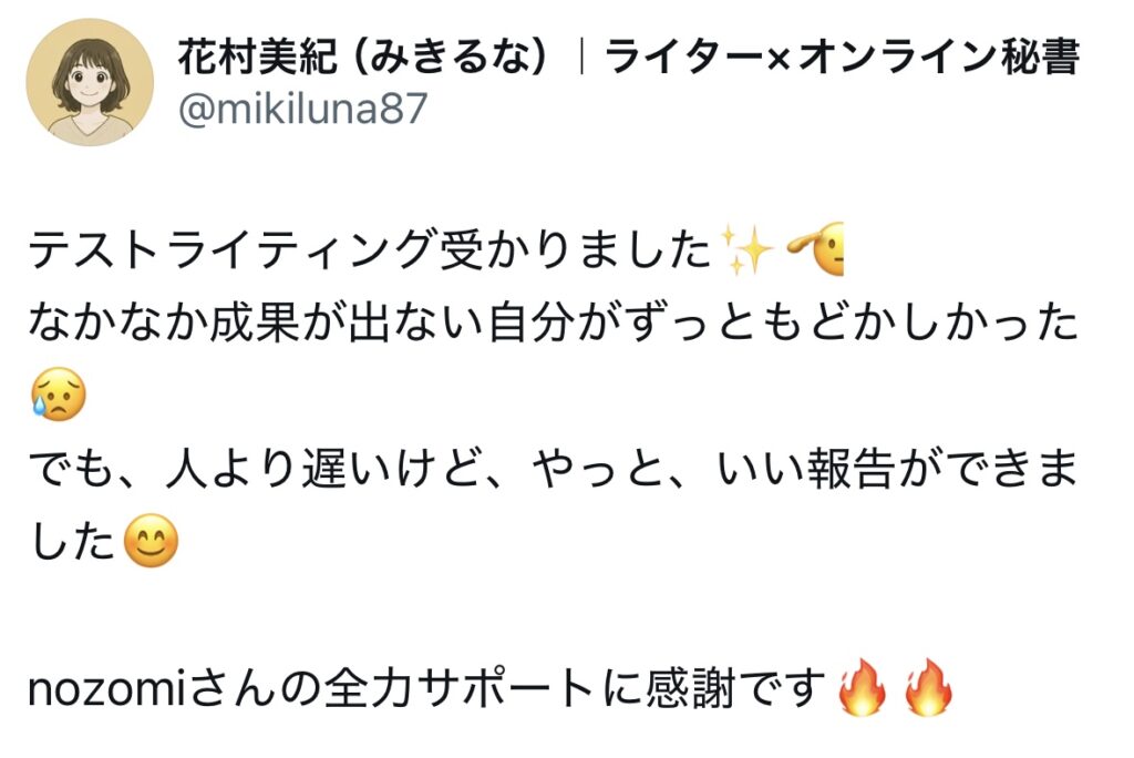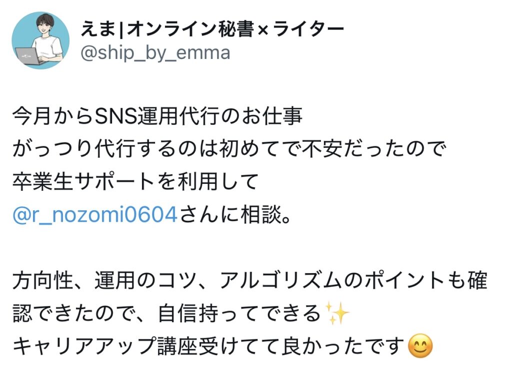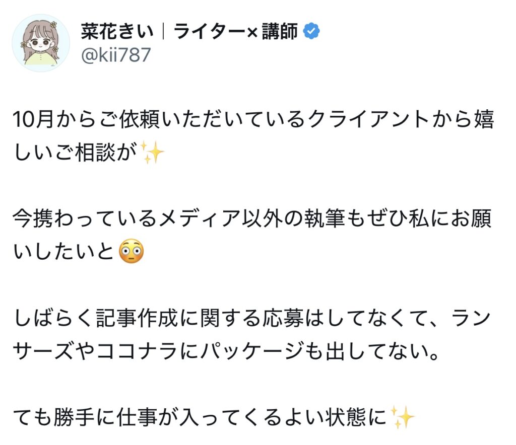 未分類 ライターキャリアアップ講座|生徒さんのお声 nozomi 2025年7月2日 2025.09.19 ライターキャリアアップ講座の生徒さんからのうれしいお声をいただいていますので、一部紹介いたします🌷 卒業生からのお声 生徒さんの成果 サポート内容 交流会、作業会 この4つに口コミを分けています!気になるところからご確認ください😌✨ 卒業生からのお声 生徒さんの成果 サポート内容 交流会・作業会